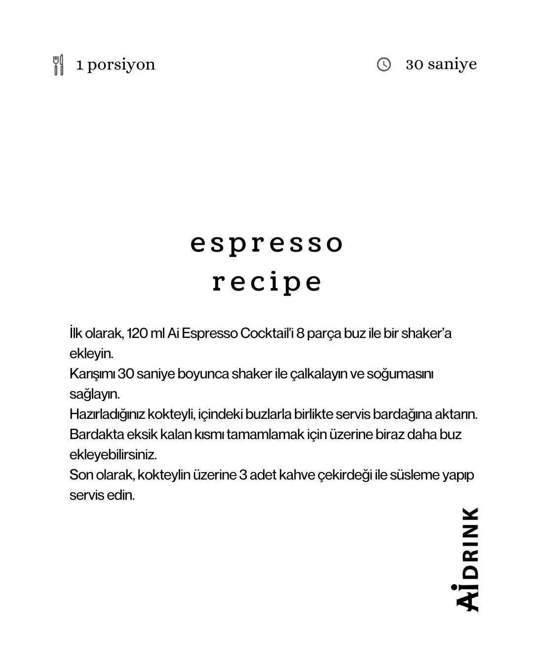 Ai Drink içecek uzmanlarımızdan bire bir eğitim almak ve ürünleri deneyimlemek için, Ai Drink eğitim barımıza gelerek yerinde canlı kokteyl ve içecek hazırlama eğitimlerine de katılabilirsiniz. 0 212-963-2616 numaradan satış departmanına ulaşarak randevu talep edebilirsiniz.