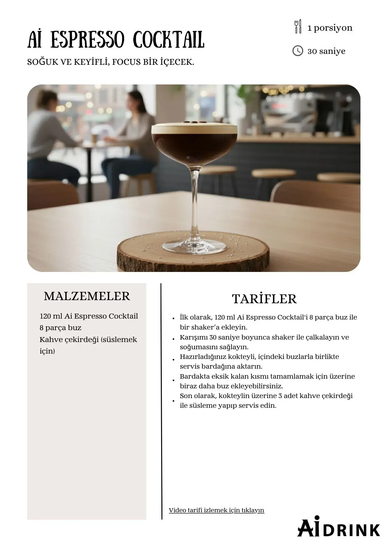 Evet, 120 mL espresso kokteylini biraz buz ile kavanoz veya kapaklı bir kabın içine koyup 15 saniye iyice çalkalayın ve bardağa koyup bol köpüklü servis edin. Detaylar için hazırlama videosunu izleyin.