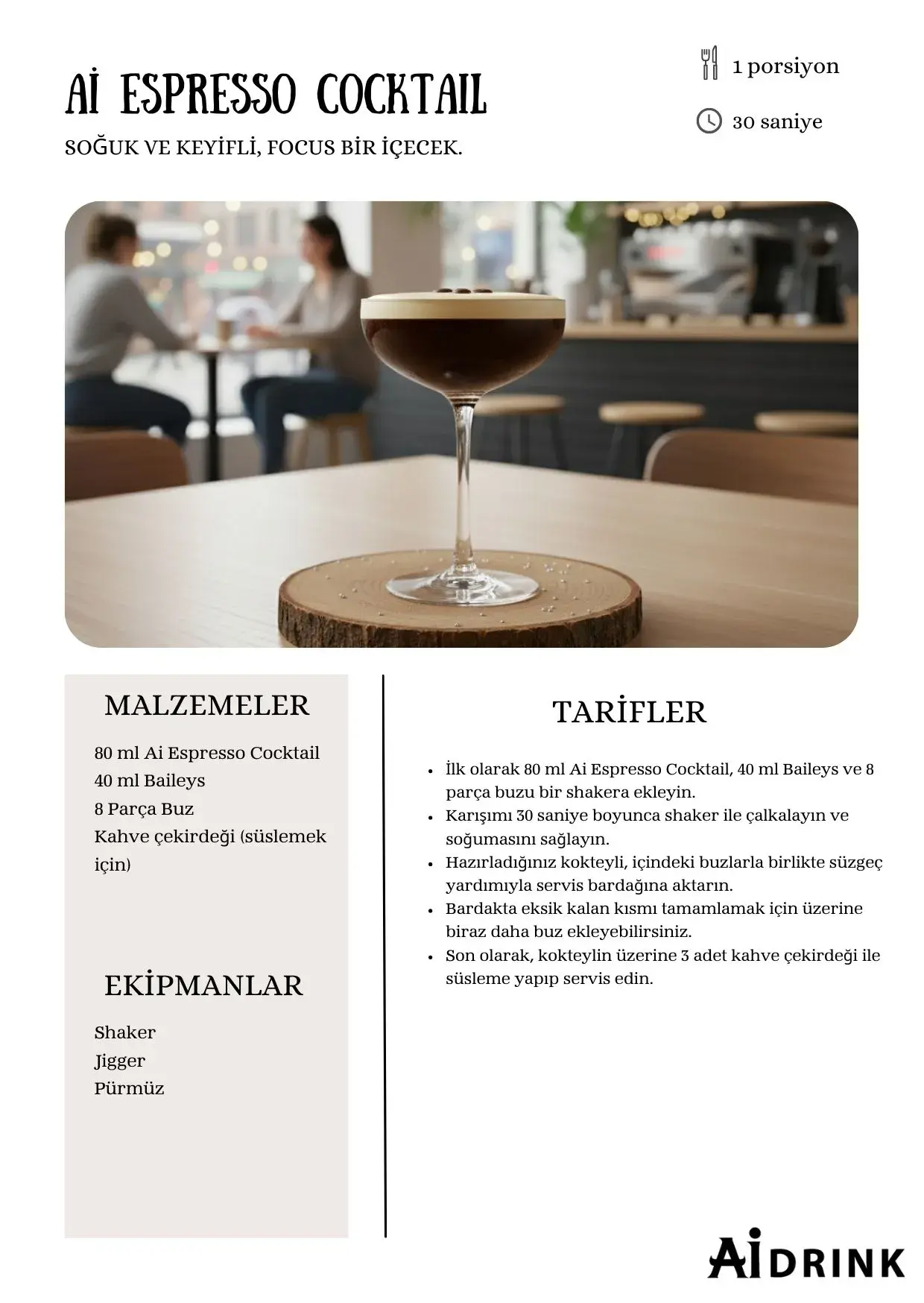 Ai Drink içecek uzmanlarımızdan bire bir eğitim almak ve ürünleri deneyimlemek için, Ai Drink eğitim barımıza gelerek yerinde canlı kokteyl ve içecek hazırlama eğitimlerine de katılabilirsiniz. 0 212-963-2616 numaradan satış departmanına ulaşarak randevu talep edebilirsiniz.
