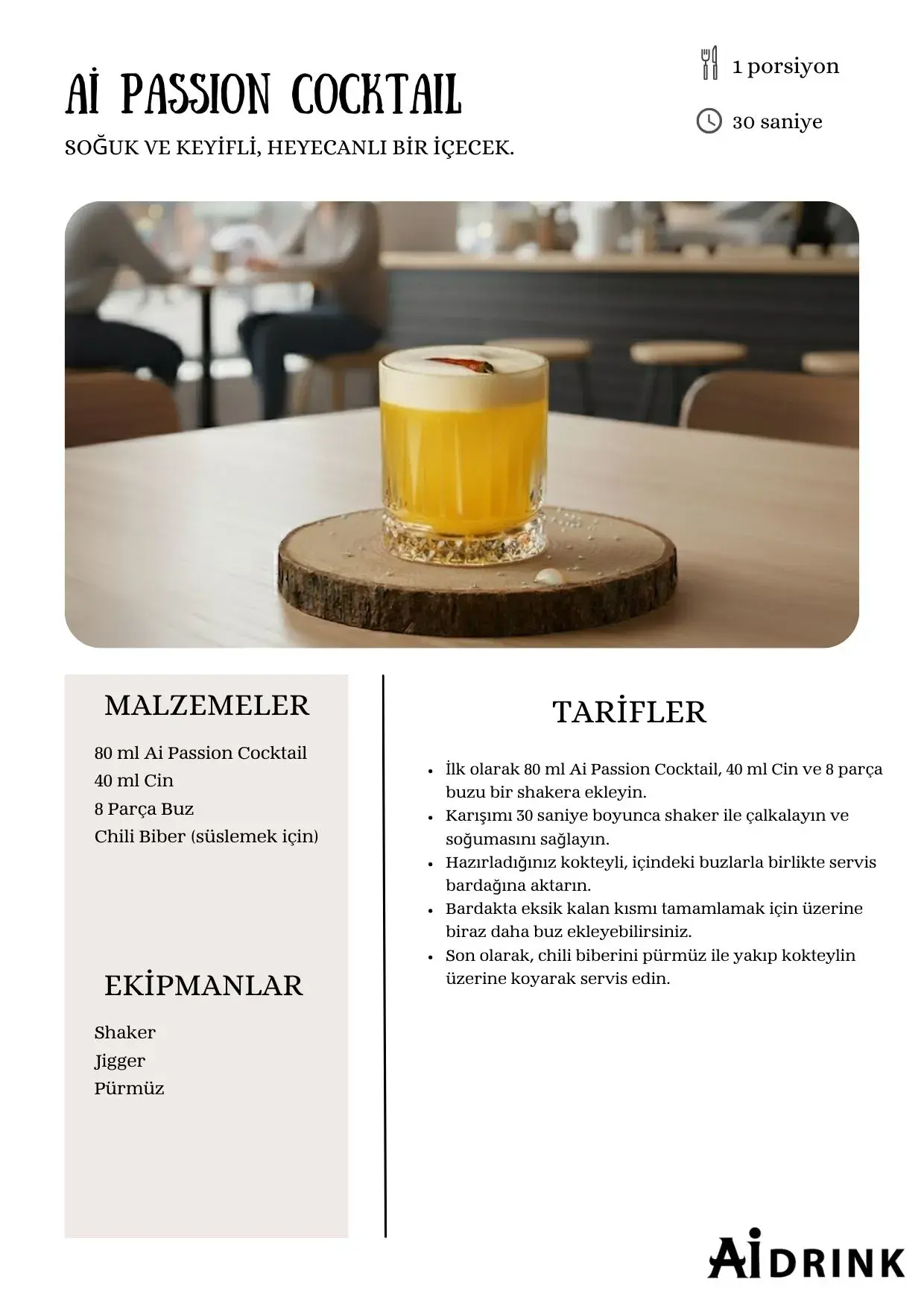 Ai Drink içecek uzmanlarımızdan bire bir eğitim almak ve ürünleri deneyimlemek için, Ai Drink eğitim barımıza gelerek yerinde canlı kokteyl ve içecek hazırlama eğitimlerine de katılabilirsiniz. 0 212-963-2616 numaradan satış departmanına ulaşarak randevu talep edebilirsiniz.